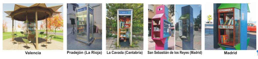 Una muy buena idea, que varios Ayuntamientos, imaginamos con el beneplácito de Telefónica, están llevando a cabo. Tenemos algunos ejemplos de ello en: La Cavada (Cantabria), Barcelona, Madrid, Irún (Guipúzcoa), Pradejón (La Rioja), Valencia, San Sebastián de los Reyes (Madrid), Ochagavía (Navarra), etc., como podemos apreciar en las siguientes fotografías: