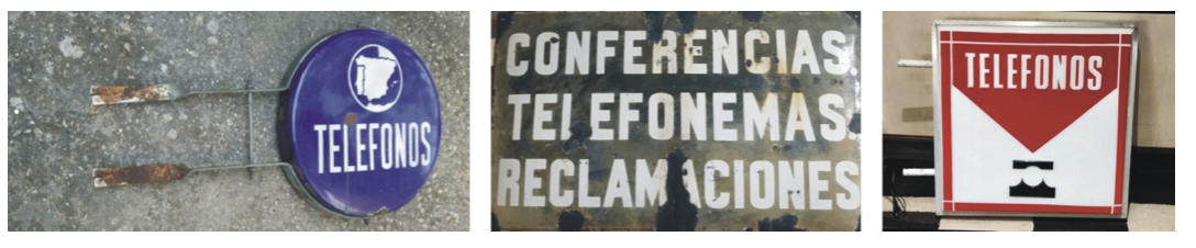 Y los otros, serian estos tres rótulos “TELÉFONO PÚBLICO”. Pero unos…, porque serán casi imposible conseguirlos: el de “TELÉFONO PÚBLICO” esmaltado con flecha indicativa de dirección, no he visto nunca ninguno físicamente… solo en la Revista Telefónica Española de 1926. El otro, en de material en plástico o metacrilato, solo lo he visto en el Archivo Fotográfico de la CTNE. Y por último, el del cartel de bronce “TELÉFONO PÚBLICO” sí está a la venta, pero su elevado coste económico, de momento… me impide comprarlo. Me tendré que conformar con verlos en fotografías en espera, que la diosa fortuna se vuelva a cruzar de nuevo en mi camino… y quién sabe si en la próxima revisión del artículo, alguno de ellos, pudieran estar ya en mi colección…