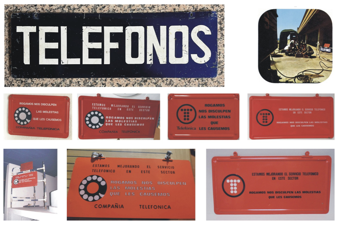 La actuación de trabajos en exteriores requería su señalización durante la realización de los mismos, siendo los mostrados a continuación, algunos de los utilizados por los celadores y empalmadores.