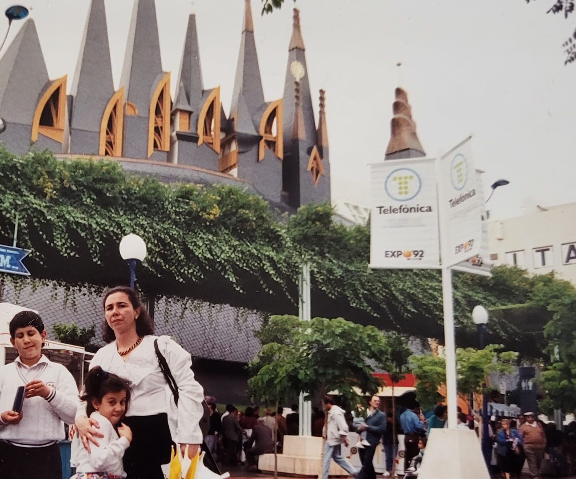 Cuando regresamos de Nueva York se continuó con la quimio y en una revisión médica a mi marido (también empleado de telefónica, hoy jubilado como yo), el doctor José Manuel Moran al enterarse de toda esta aventura y ver todo lo sufrido y lo traumático de la situación, se le ocurrió ofrecernos ir a la EXPO en plan VIP, me preguntó si estaría dispuesta a ir con los niños a la Expo de Sevilla en el AVE, yo le dije que no creía en los cuentos de hadas, y que no tenía presupuesto (fui un poco borde en mi contestación pero en mi circunstancia “no creía en cuentos de hadas”). Él organizó todo con el doctor Javier Agudo y con el equipo del presidente, Cándido Velázquez, que a través de Guillermo Medina nos recibió en su despacho (otra sorpresa de la vida, su secretaria era una gran amiga Pilar Rodelgo, ¡¡que sorpresa al vernos allí!!) para comunicar a mis hijos si querían ir a la Expo del 92 en el AVE(3). Tendríais que haber visto la cara del mayor y la risa de Guillermo Medina al verle, pero luego, lo mejor, mi hija con 7 años y sin saber muy bien el motivo se lanzó a darle un beso y un abrazo.