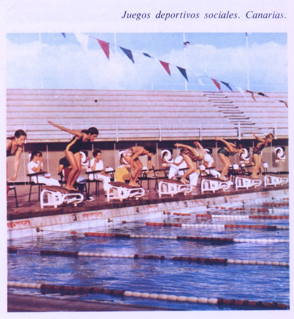 Los juegos deportivos sociales se celebraron en Santa Cruz de Tenerife. Fue mi primer viaje en avión. allí nos juntamos todas las delegaciones y competimos, no solo los de natación también los otros deportes. Aprovechábamos que así entrábamos más tarde a trabajar y nos pagaban el desayuno, lo malo era el madrugón para ir a entrenar, dependiendo del tiempo a la piscina Picornell o San Jordi. Todavía tengo contacto con algún compañero de natación de entonces.