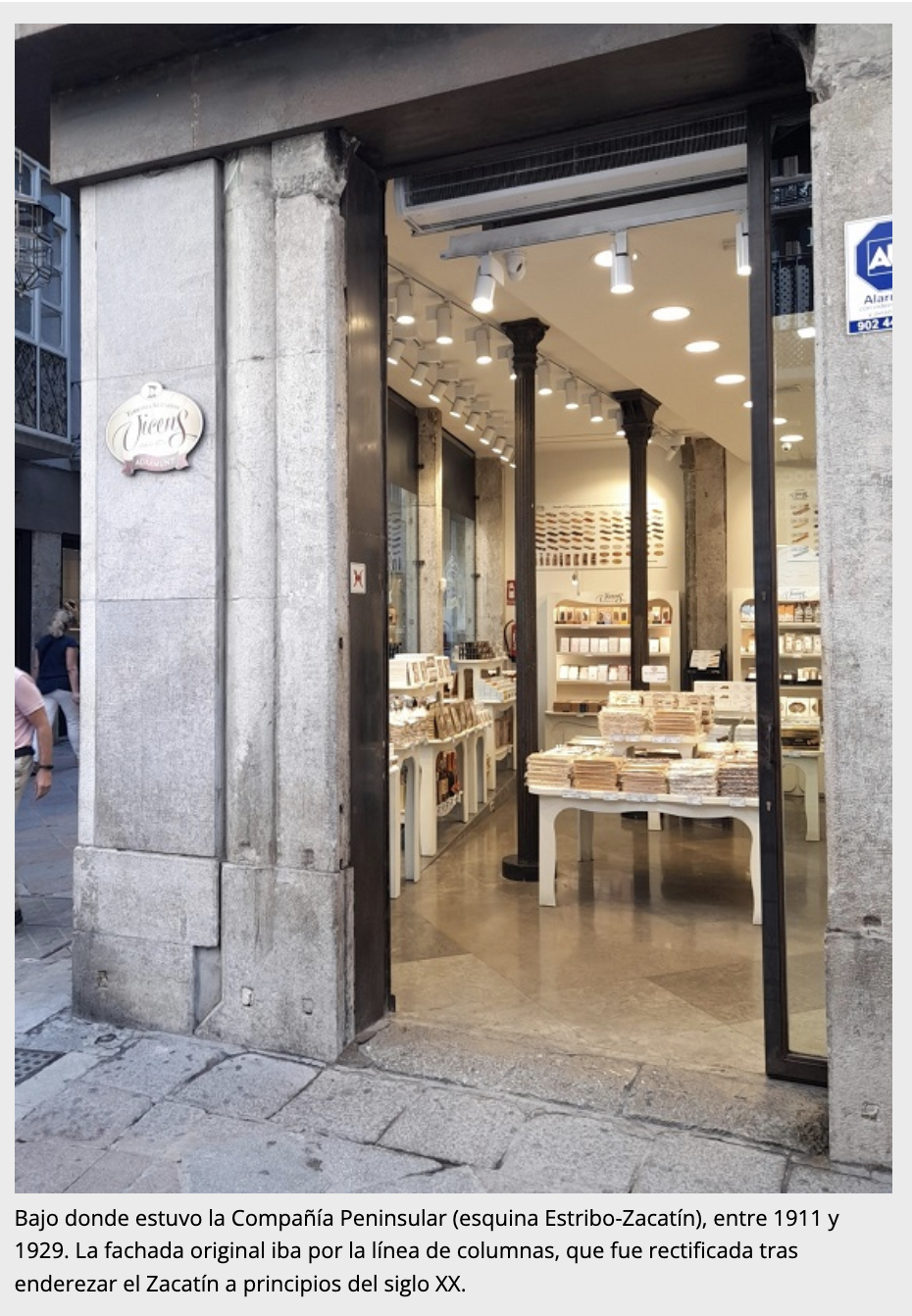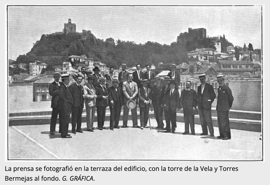 1927-28. Demolición de la casa de viviendas, excavación de sótano y construcción del primer edificio en hormigón armado de Granada. El estilo rompió la estética historicista que mantenía la calle Reyes Católicos y había continuado con la Gran Vía. El arquitecto Giménez Arévalo había levantado unos cuantos de este estilo: Palacio Duque de Abrantes (esquina a Sierpe, con fachada rehecha en los años cuarenta), Casa de Correos, Plaza de Cuchilleros, números 7 y 32 de la Calle Reyes. También Juan Montserrat dio un toque modernista en el Edificio Colón; varios arquitectos más se afanaron en dignificar lo que hasta 1875 había sido el Revés del Zacatín, o sea, la calle más fea e inmunda de Granada.