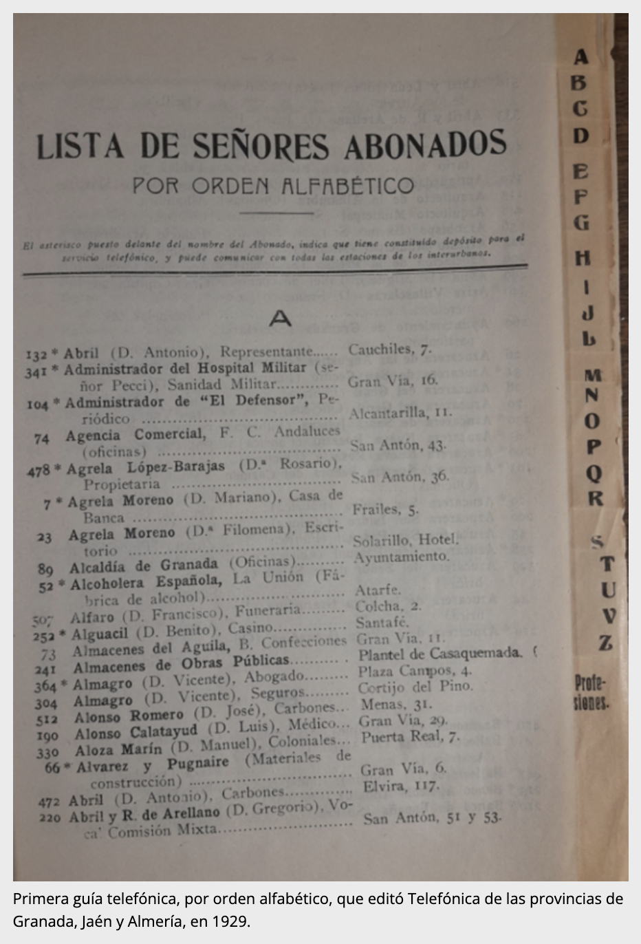 Granada fue una de las primeras provincias en las que desembarcó la nueva Telefónica en busca de sede central (1925); también la última en el uso de la centralita manual con operadora (1988, Polopos)