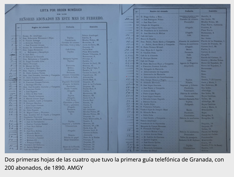 Aquel listado de 1890 es muy elocuente para conocer quiénes eran las doscientas personas más importantes de Granada. No se era nadie si no se tenía teléfono