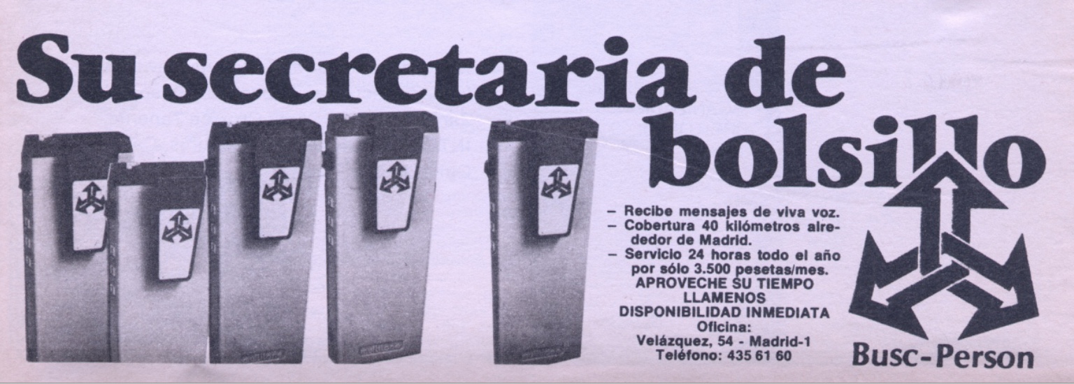 - BUSC-PERSON SA. Activa en Madrid al menos entre 1982 y 1986. Posteriormente existió Busc-Person Telecomunicaciones SL hasta 2013 pero domiciliada en Málaga.