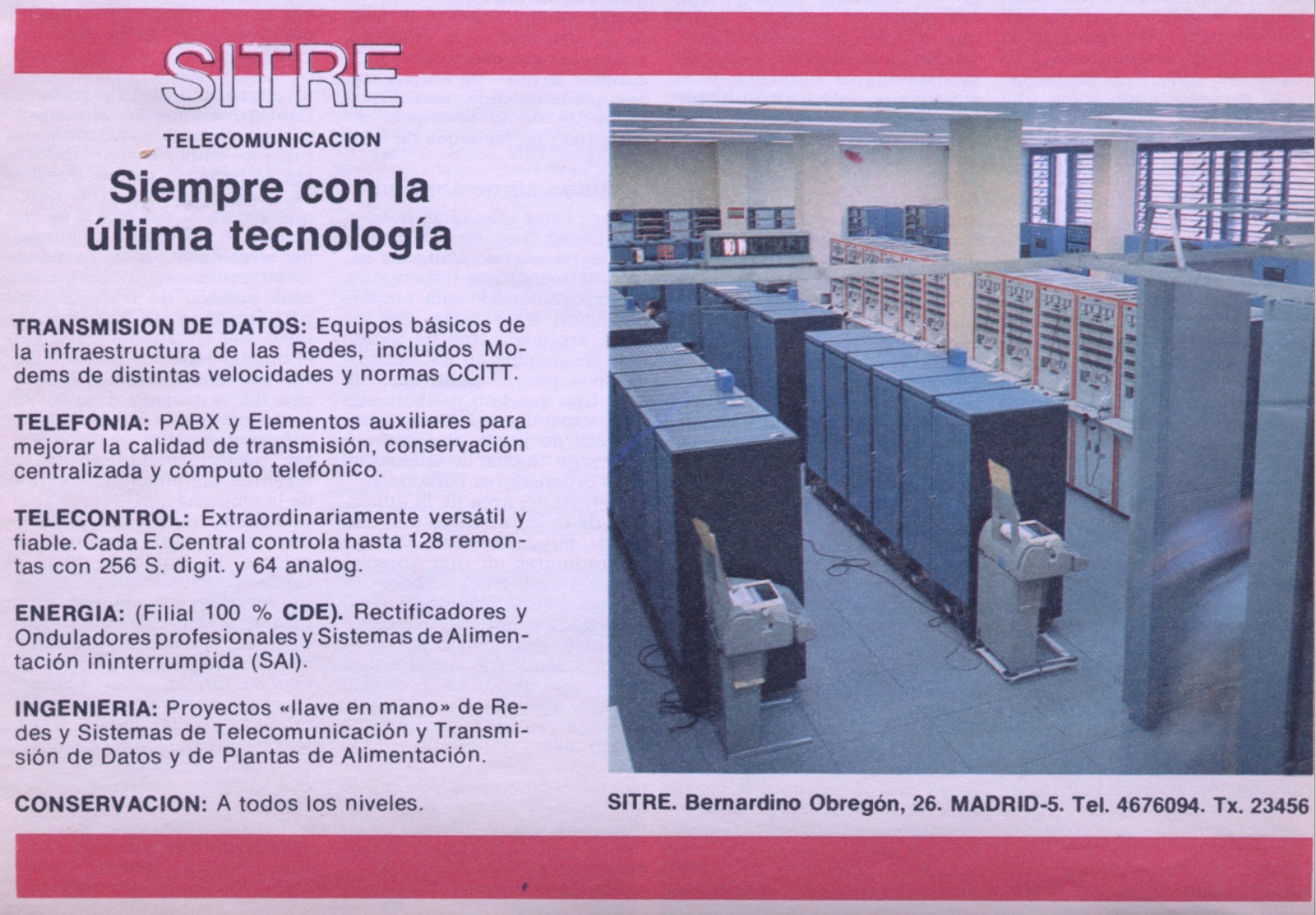 - SITRE TELECOMUNICACIÓN. Fundada en 1960 con sede en Madrid para la realización de servicios de ingeniería y desarrollo de proyectos de informática y telecomunicaciones. Sigue operativa.