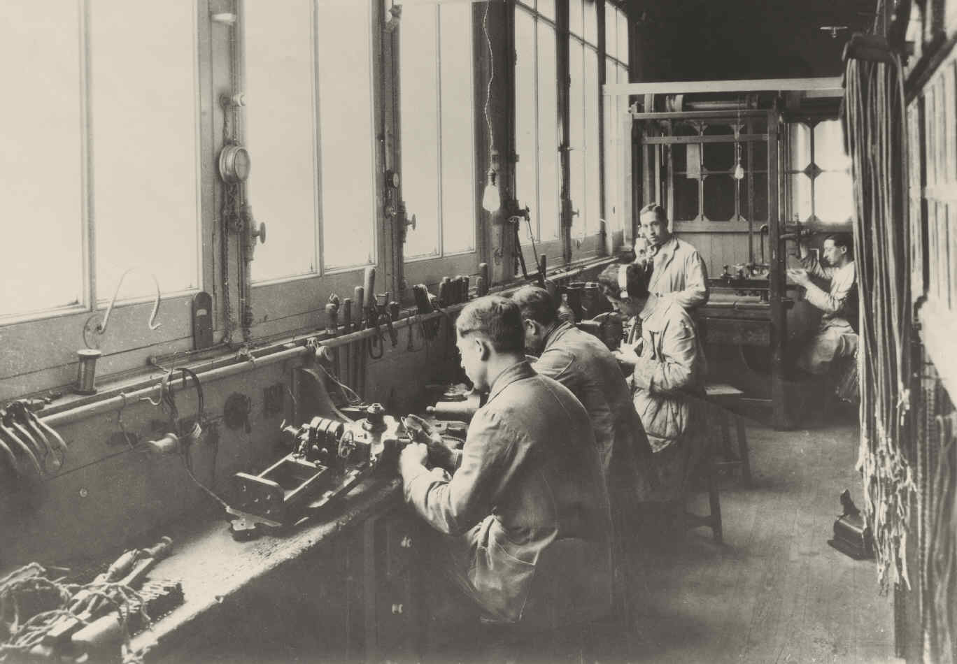 Taller de Barcelona (izquierda) y de Bilbao (derecha), fotos de 1926 del Archivo de Telefónica