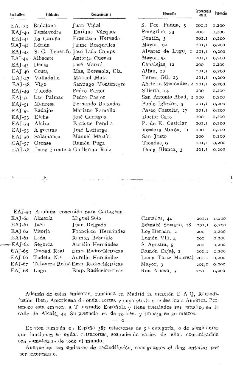 Con estas pinceladas, que completa el cuadro de las emisoras trazado por Virgilio Soria en 1935 (Fig.5), acompañadas de una cordial dedicatoria a Isidoro Ruiz-Ramos, por sus desvelos, desde el Foro Histórico de las Telecomunicaciones y otras instancias, hacia la radiodifusión y los radioaficionados, se pretende situar, evitando derivadas partidarias o sectarias, el marco temporal en el que se inserta el primer centenario de la Radio en España.