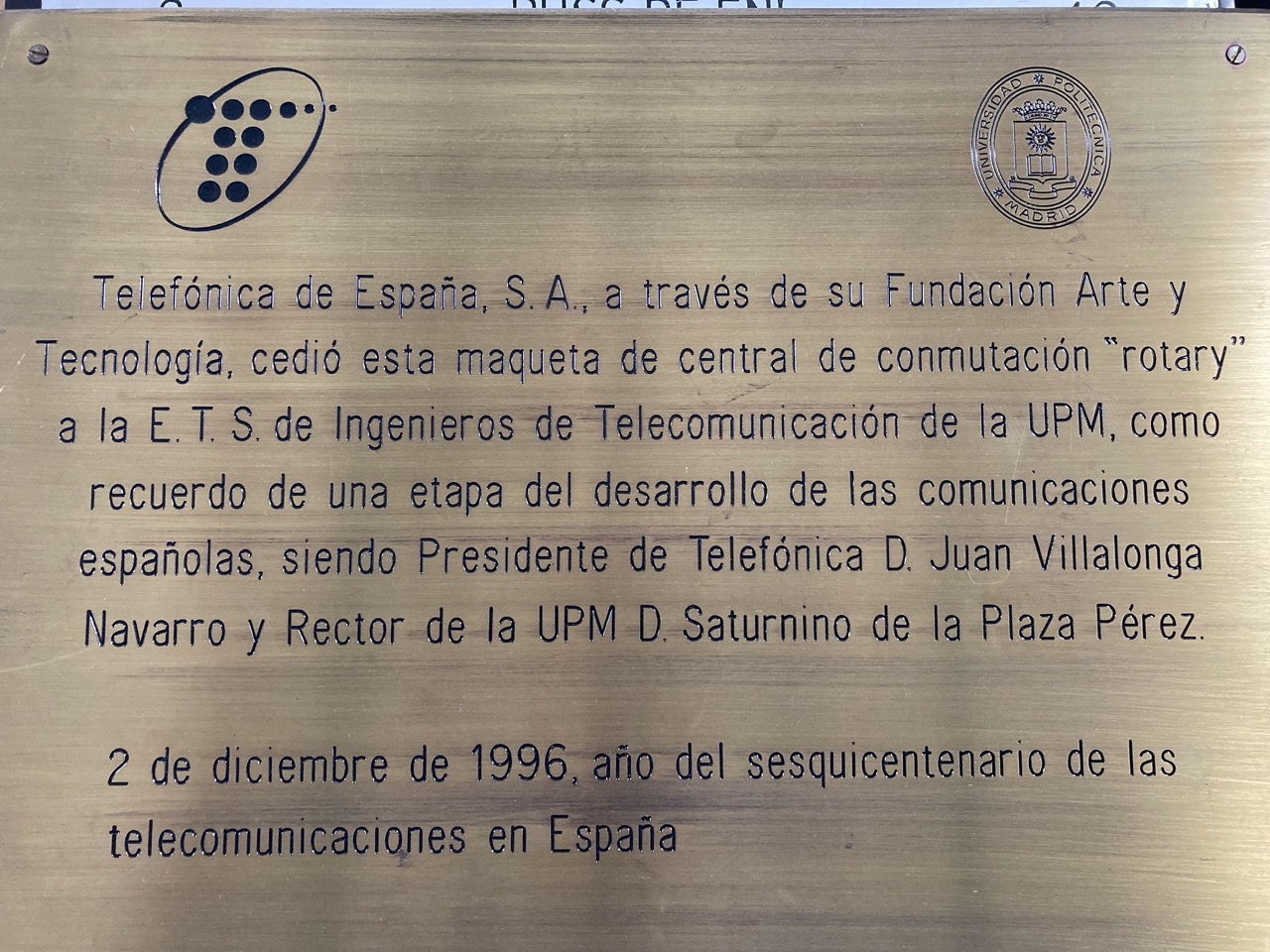 Fue la primera maqueta cedida por la Fundación Telefónica (entonces Arte y Tecnología), de varias, cedidas a Escuelas Universitarias y otras instituciones en los años 90 y que hoy forma parte principal del patrimonio conservado de equipos de conmutación electromecánica en España.