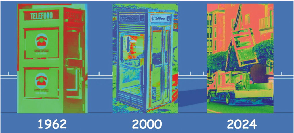 Lamentablemente, estamos viendo (y viviendo…), desde 2022 de manera definitiva, el desmontaje desde las pocas cabinas telefónicas que aún quedaban en pie (en funcionamiento, hacía varios años que la mayoría habían dejado de hacerlo…) en España.