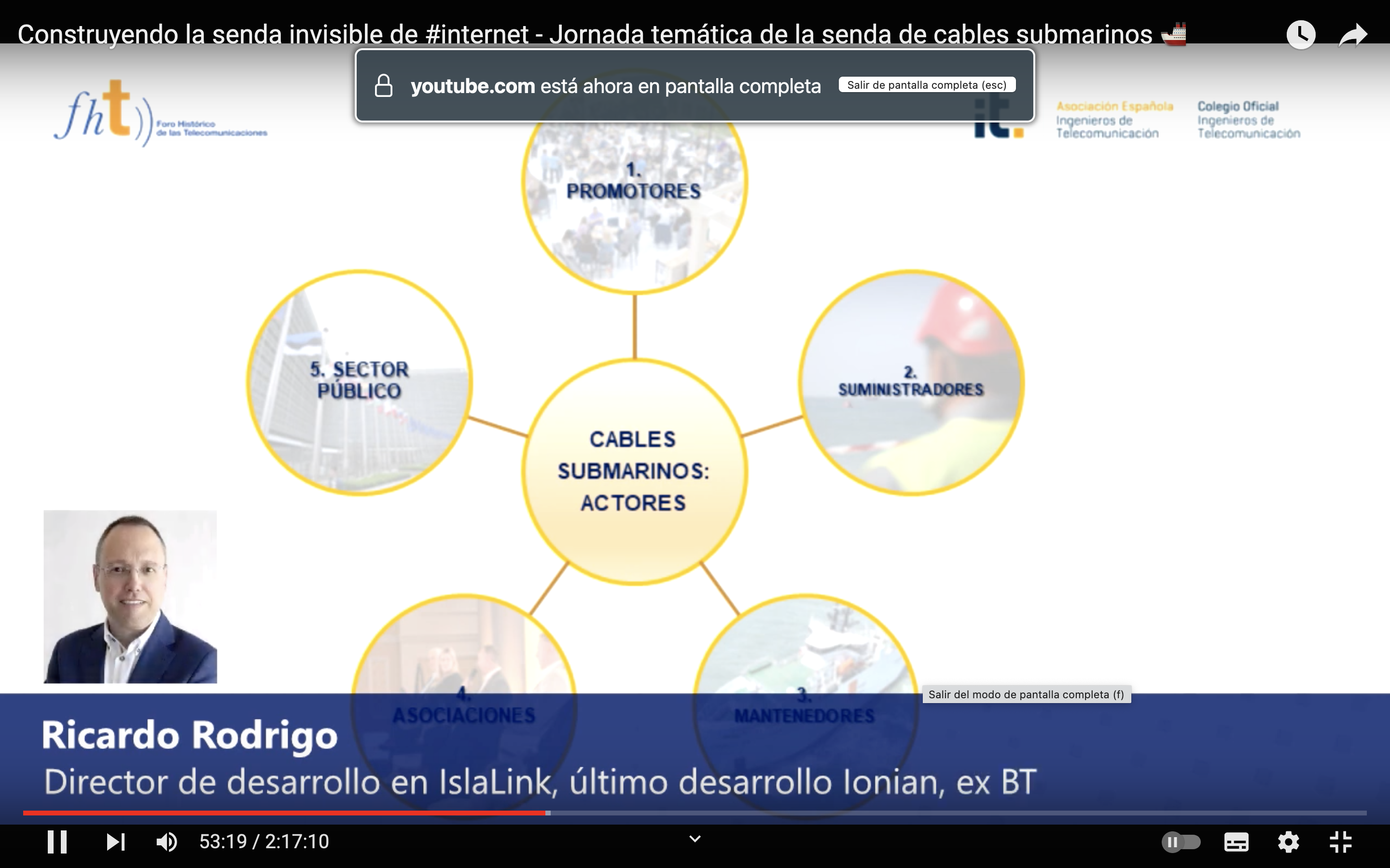 Siendo todas las ponencias muy interesantes, por tratarse de un aspecto de las infraestructuras de telecomunicaciones poco conocido en general, por lo que recomendamos su visionado completo, no obstante, destacamos aquí, por el tratamiento de aspectos históricos, la primera y la última de las presentaciones.