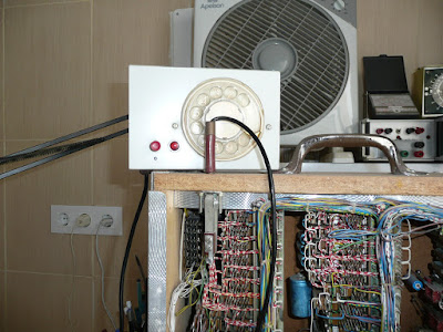 Centralita Controladora. Centralita realizada con relés reciclados, pertenecientes al Sistema de Conmutación PC-32, discos de marcar de Heraldo y Góndola y esquema.