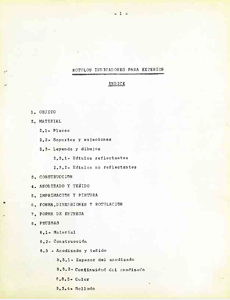 Entre las veinticuatro especificaciones que componen el documento, una de ellas llamó poderosamente mi atención: la 635.012 (Edición provisional de julio de 1966), que era la que se refería a los “Rótulos Indicadores para Exterior”.