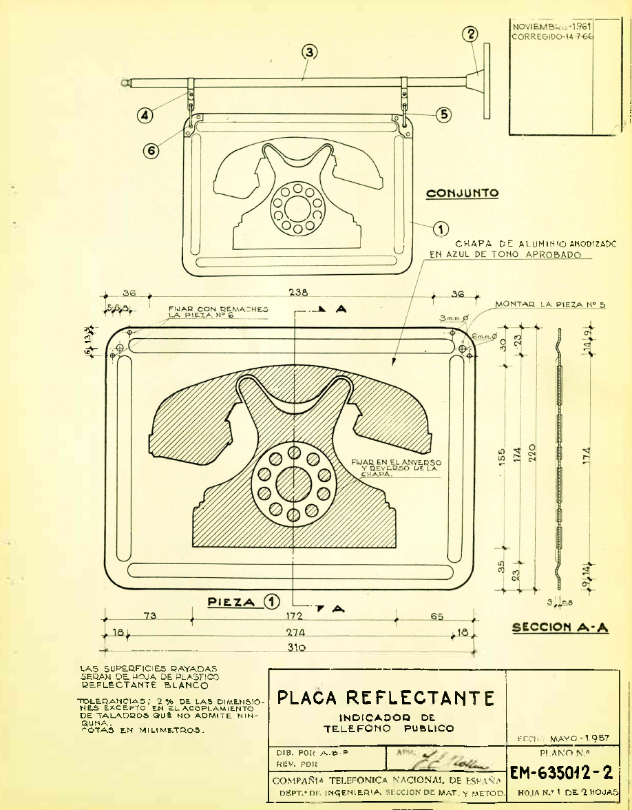 Algunos detalles de los dibujos de la Especificación 635.011 de la web de Fundación Telefónica