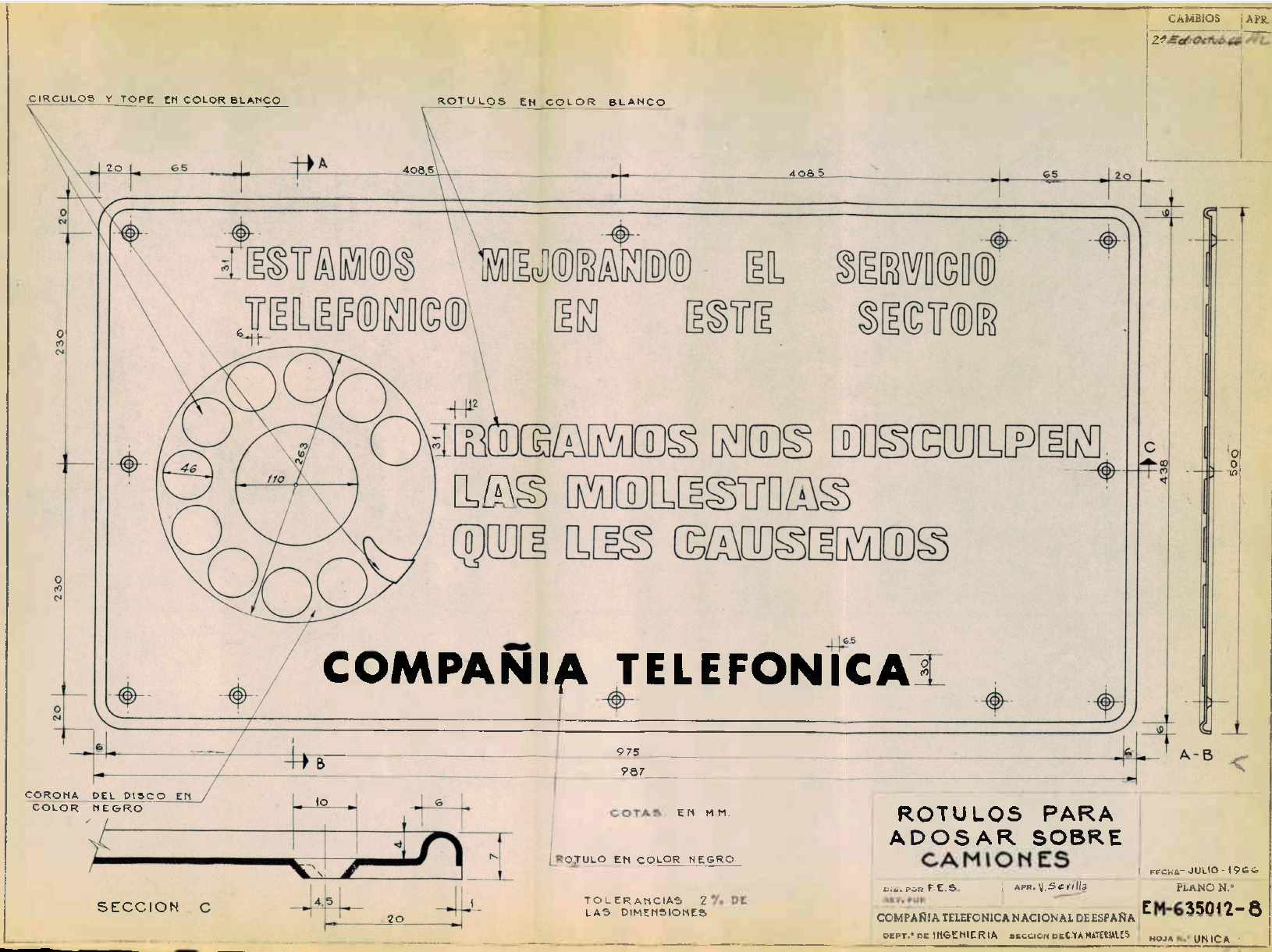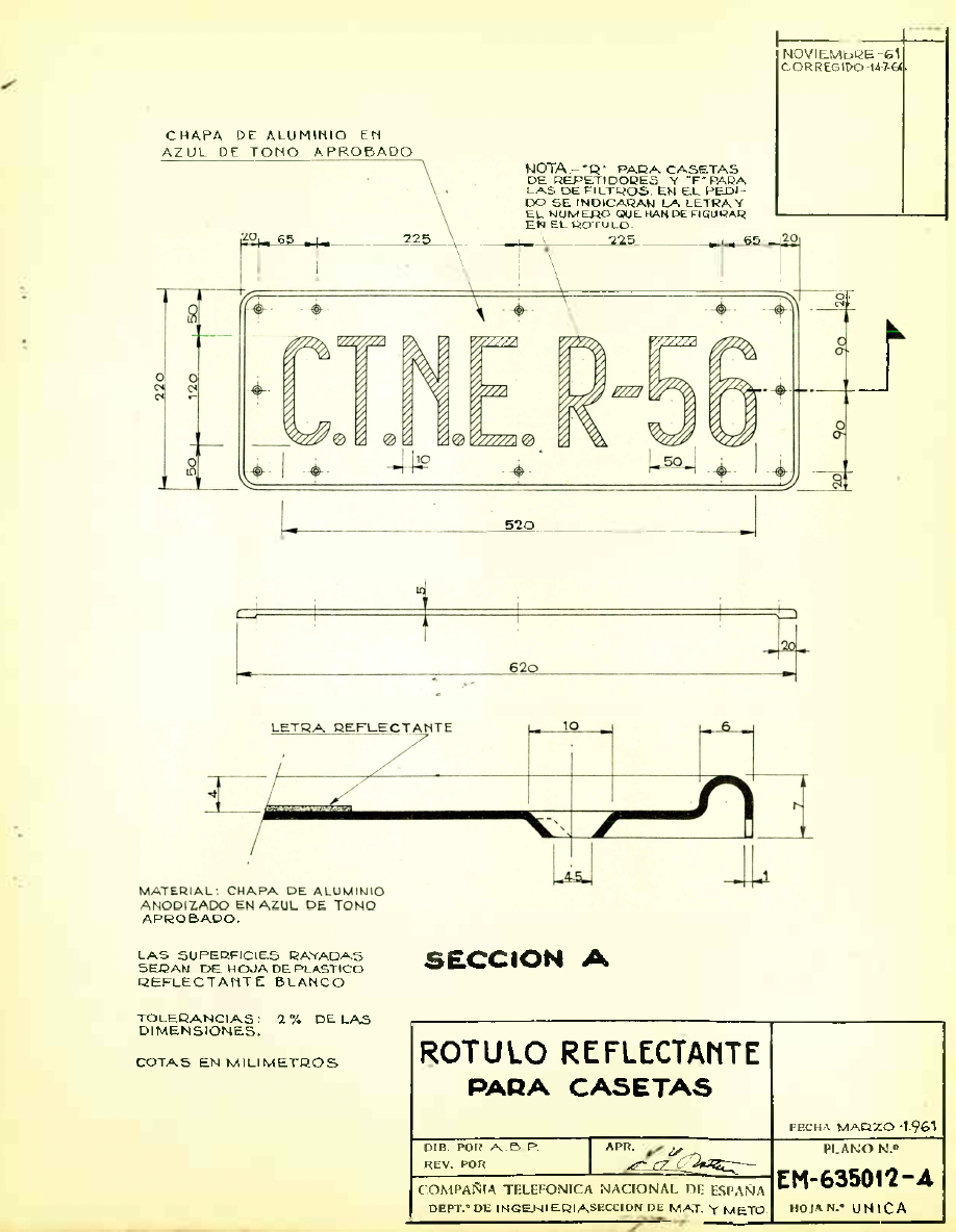 Lo que sobre todo se puede certificar con esta documentación es que estos rótulos corresponden a un diseño del Departamento de Ingeniería de CTNE, y no al albedrío de los fabricantes.