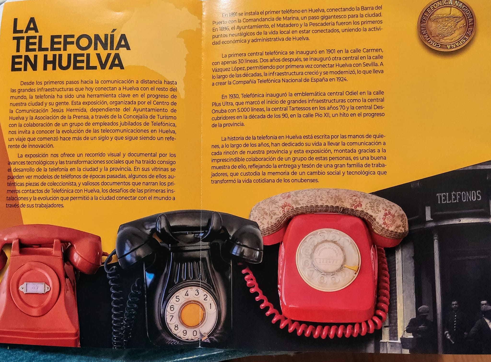 Se muestra a través de una extensa variedad de aparatos, equipos y documentos, así como fotografías cedidas por los propios telefónico, la historia de la telefonía en Huelva desde sus primeros años hasta la actualidad.
