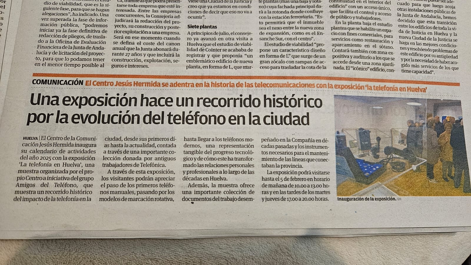 Nuestros compañeros Amigos del Teléfono de Huelva han inaugurado el pasado jueves día 16 de enero, en el Centro de la Comunicación Jesús Hermida de la capital, una nueva exposición retrospectiva de la historia del teléfono en la provincia onubense, celebrando así el reciente centenario de la Compañía Telefónica y como homenaje a sus protagonistas.