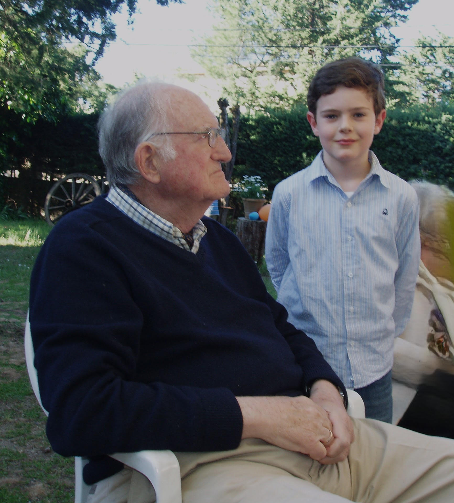 La del autor, entonces en primaria; hoy piloto de EasyJet. Su padre, conservador y restaurador, vinculado al patrimonio histórico de la comunicación. Su abuelo, José María, protagonista de la historia de las telecomunicaciones durante muchas décadas, con quién aparece el maquetista en la primera fotografía que ilustra esta entrada. Y en el trasfondo, el padre del abuelo, José Romeo Latorre, uno de los primeros radiotelegrafistas españoles. ¿Quién da más?
