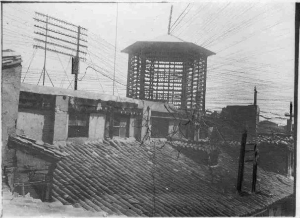 En medio centenar de fotografías del archivo histórico de la Fundación Telefónica aparece este término en la descripción de las imágenes. Claramente se aplica a las estructuras de soporte que se montaban sobre los tejados, cubiertas y azoteas, en los tendidos aéreos de las líneas de abonado que se distribuían desde los viejos templetes.