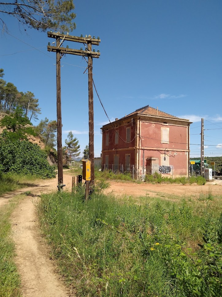 La CTNE denominó a las estructuras similares a los caballetes o herce, «postes en H», poste en H cerca de la estación de Els Guiamets. Foto: Emilio Borque.