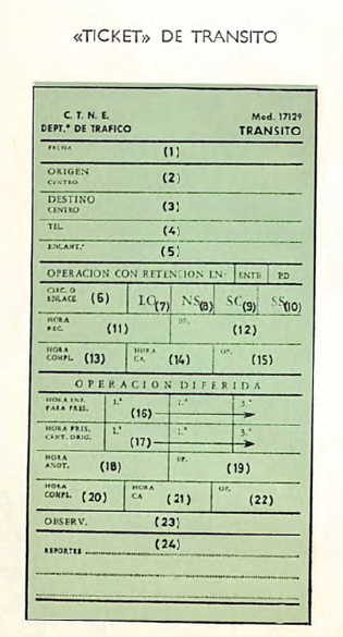 Tickets de salida, entrada y tránsito. CTNE, Manual de la Telefonista, 1974