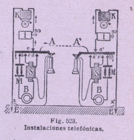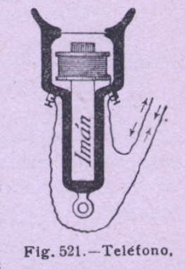 Apenas dos páginas se dedican al «teléfono magnético» en las que sólo se menciona a Bell y 1877 como fecha. Se describe el mismo y se comenta que en la actualidad «sólo se emplea como receptor, es decir para escuchar», y se describe a continuación el micrófono de varillas de carbón como elemento transmisor.