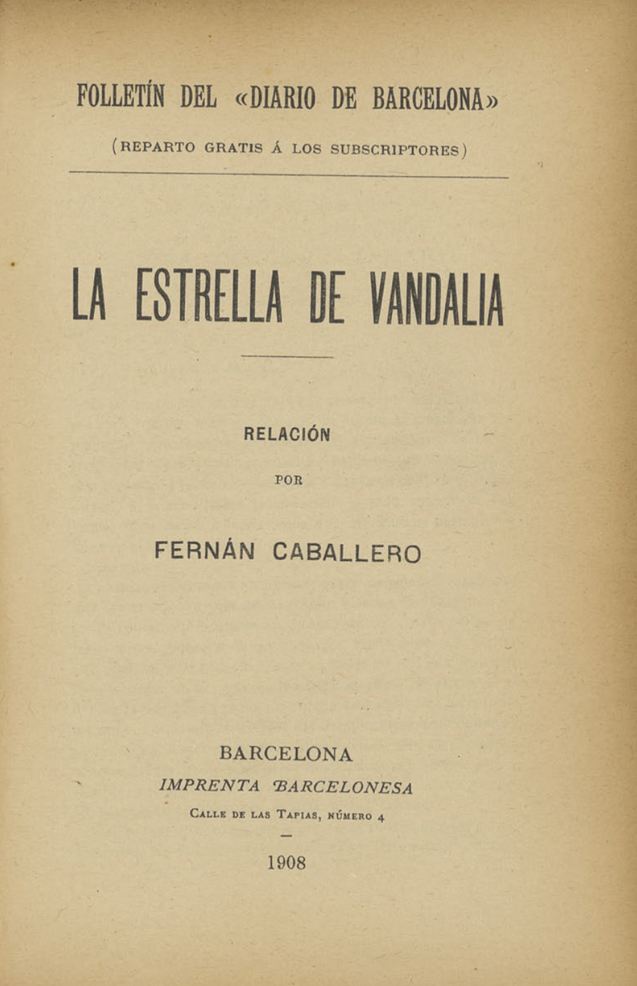 Otra de las referencias que encontramos, se la debemos a Cecilia Böhl de Faber (1796-1877), más conocida por su seudónimo «Fernán Caballero», en su obra La estrella de Vandalia, publicada en 1880 y dedicada a Dolores Tamariz con la que tuvo una gran amistad durante su estancia en Carmona, población sevillana que porta en su blasón una estrella y la leyenda: «SICUT LUCIFER IN AURORA, SIC IN VANDALIA CARMONA». Como brilla la estrella de la mañana en la aurora, brilla en Vandalia Carmona. Para una mejor interpretación de la obra recomiendo la lectura de «Una muestra de la escritura de Fernán Caballero sobre Andalucía: La estrella de Vandalia» de Rogelio Reyes Cano.