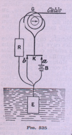 En el apartado de telegrafía eléctrica se describe, sin mencionarlo, la base del sistema de Cooke y Wheatstone de agujas y después el sistema de relais que ya empleaba el sistema del alfabeto Morse, incluyendo también la descripción de un básico sistema dúplex de telegrafía (fig. 525).