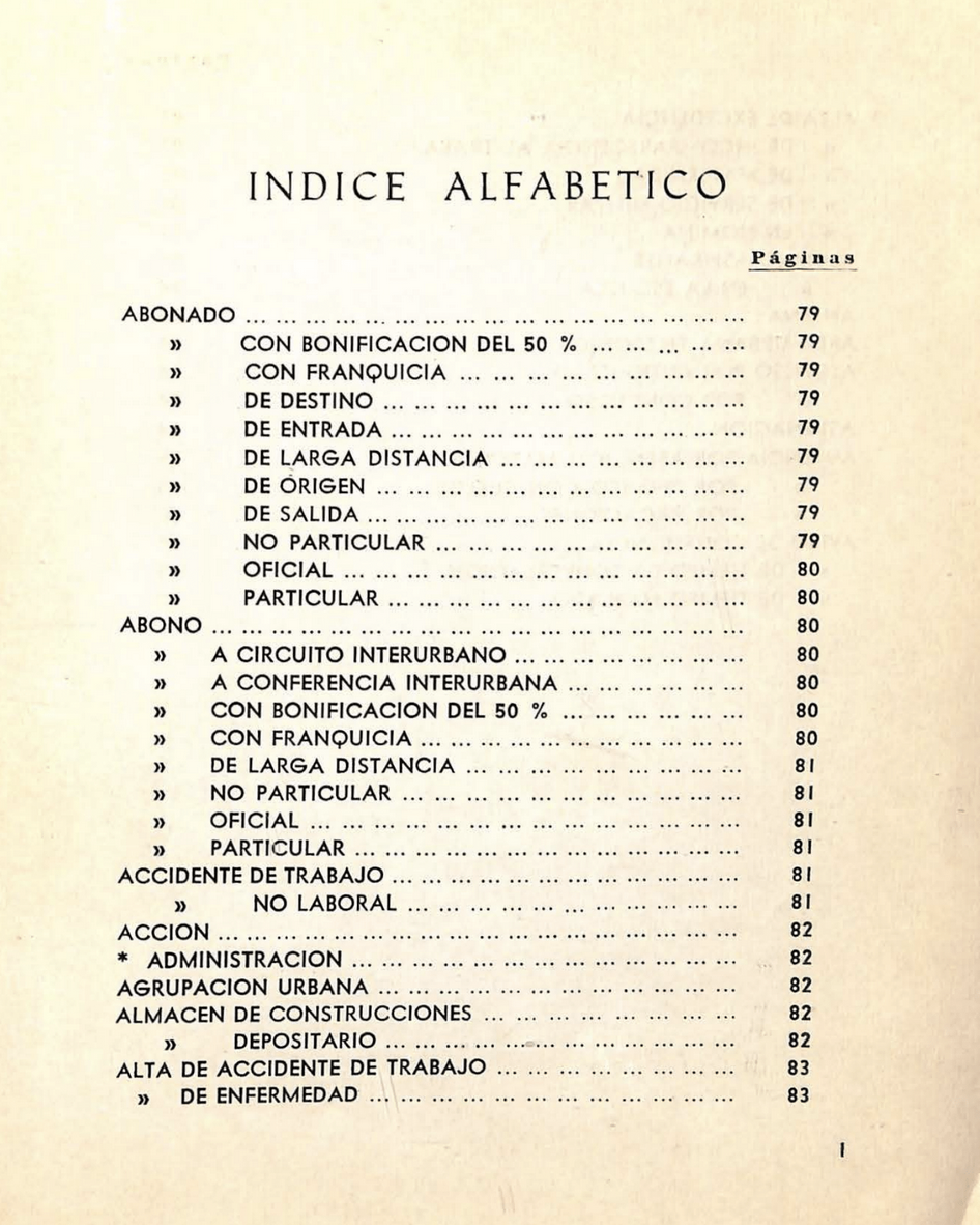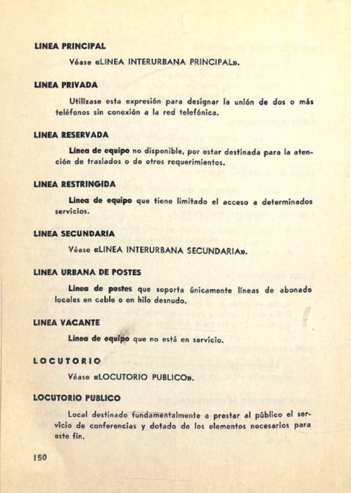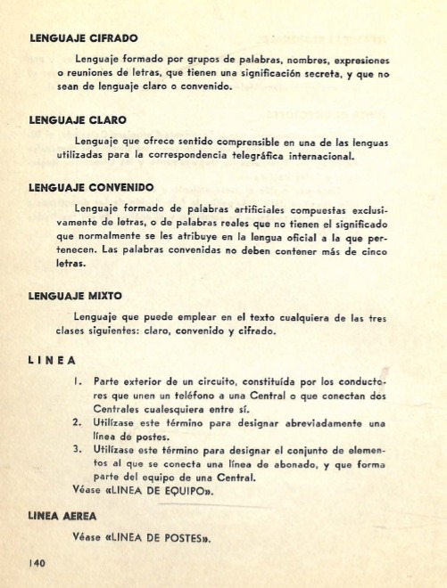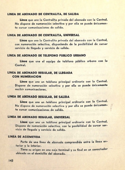 «… los conceptos más utilizados en la Compañía Telefónica y aquellos que presentarán interés con vistas a la necesaria codificación requerida para la introducción de los procesos de mecanización»