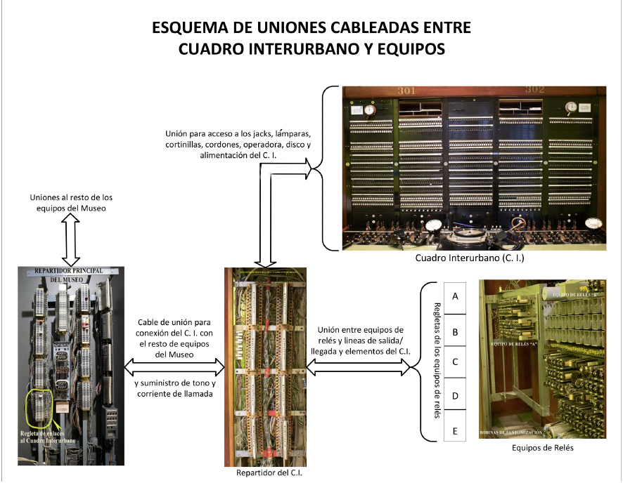 El Cuadro Interurbano es una pieza fundamental en el Museo, era realmente «el eslabón perdido» como se apunta en la primera presentación, ya que permite conectar todos los demás equipos del museo y con el resto de las redes públicas, móviles o fijos. Fue una labor tremenda la recuperación del cuadro, Pablo Bouvard lo cableó, trabajando en él todo un año, con la ayuda de Ernesto sobre todo en el diseño de los circuitos y de Sotelo con la electrónica, por 1990, en los inicios de lo que luego fue el museo.