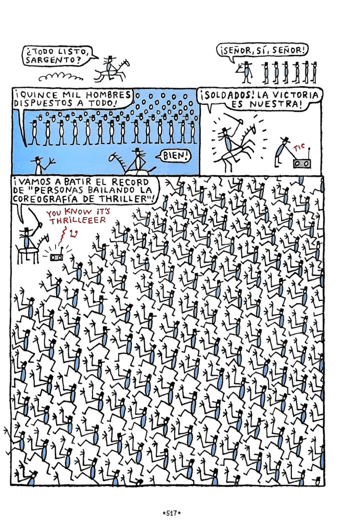 Imagen que me recuerda a varias de el gran Calpurnio en su maravillosa serie El bueno de Cuttlas, como por ejemplo la siguiente, en la que, en efecto, el ejército del séptimo de caballería se conforma de forma casi coherente, salvo por algunas excepciones de individuos a los que probablemente les caiga unos días en el calabozo: