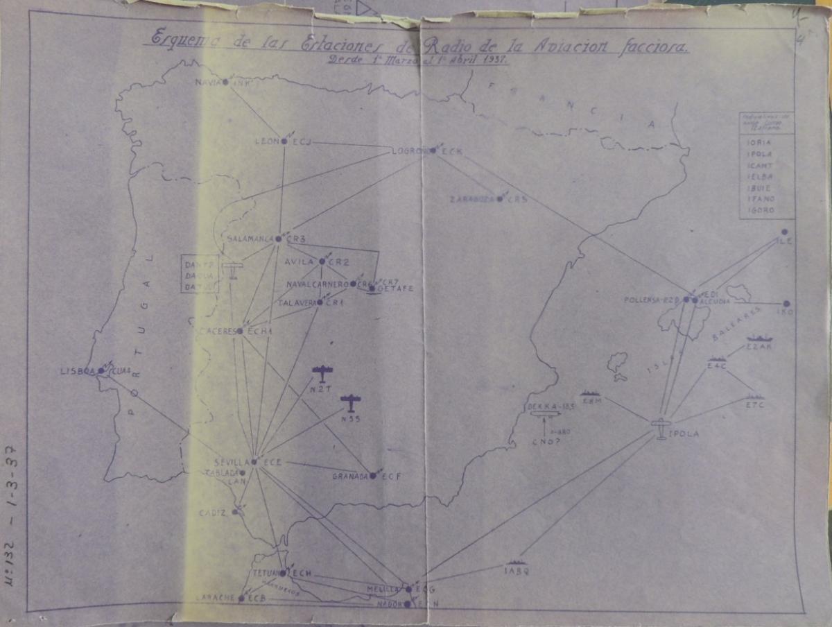Plano de Estaciones de Radio de la Aviación Nacional, 1937, AHEA Sig 0023