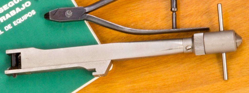 AVIÓN. Herramienta de ajuste usada para desmontar bloques de contactos de relés tipo Pentaconta. Se le llamaba así, por tener en uno de los extremos, una palomilla que recordaba a la hélice de un avión.