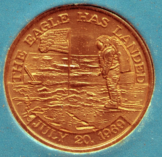 Medalla conmemorativa Apollo 11. Anverso. «El Eagle ha alunizado, 20 de julio de 1969»