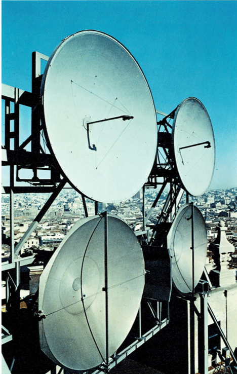 Parabolas en el edificio de Madrid/Gran Vía. Memoria CTNE 1969.