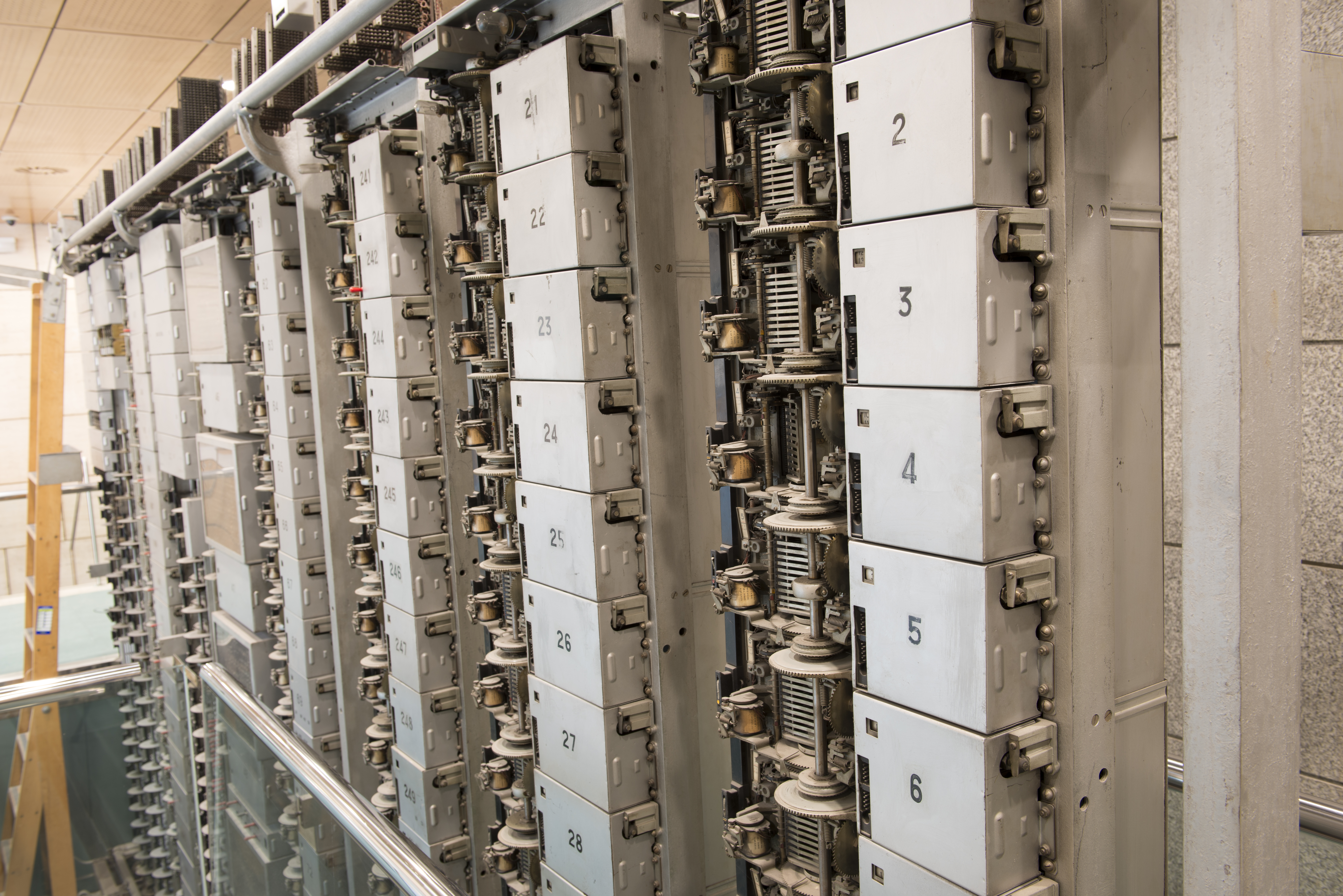 En este edificio de Telefónica sito en la población de Arvaca en Madrid se ubica el Centro Nacional de Supervisión y Operación de la compañía, En él se mantiene expuesta una Sección de Central Rotary 7A2. (Fotos: personal Canal T de Telefónica)