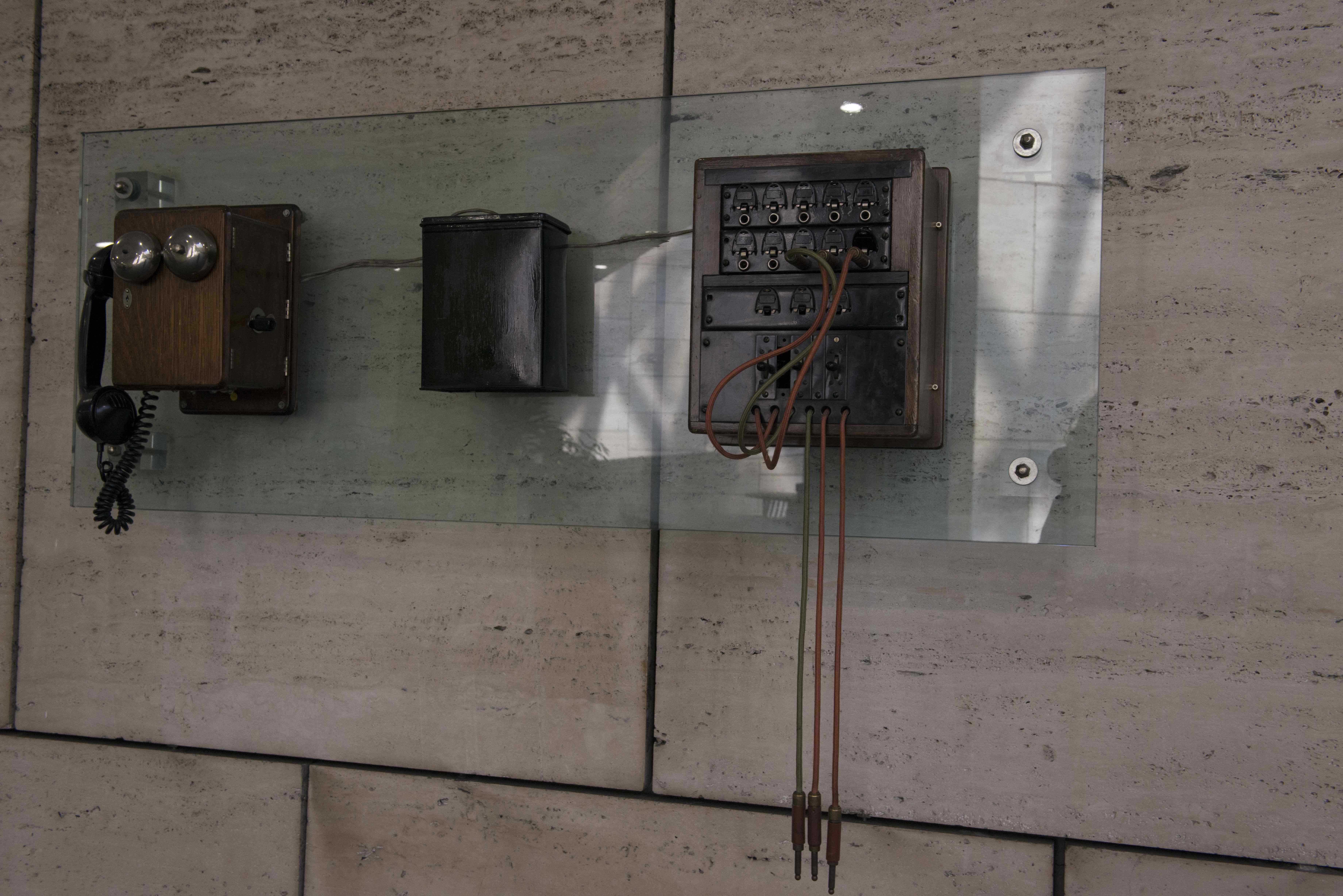 Y también además de elementos varios en pequeños expositores repartidos por el edificio, una estación de abonado de batería local más una pequeña centralita manual.